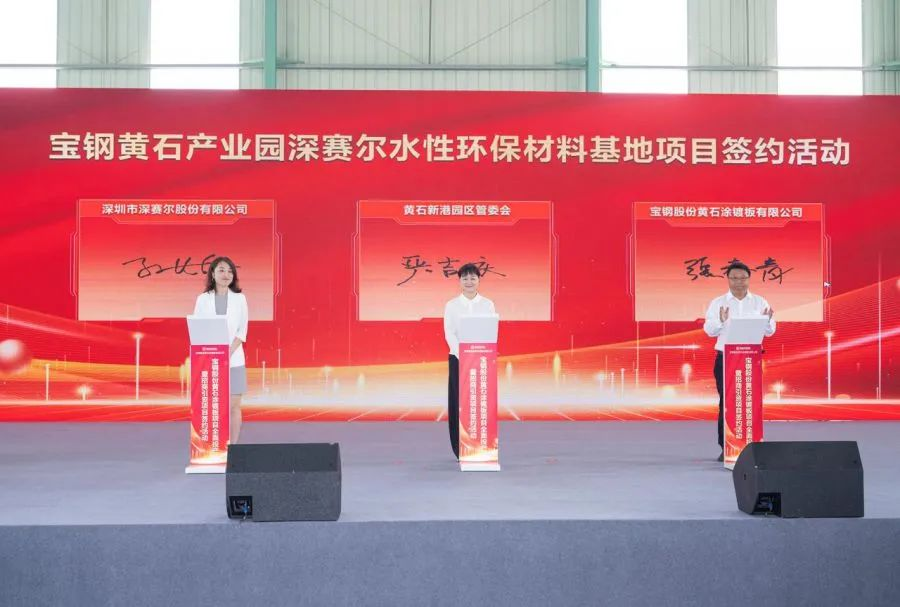 深賽爾、寶鋼黃石、新港園區(qū)三方共同簽約